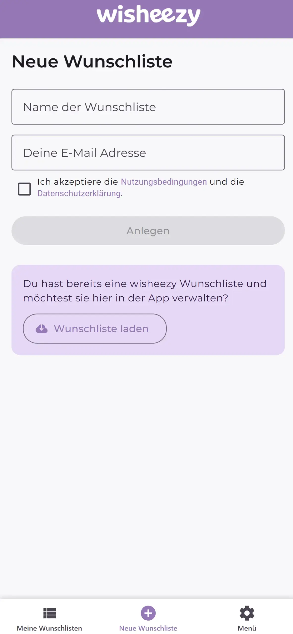 La aplicación sustituye por completo a nuestro sitio web. Puede crear, editar y compartir nuevas listas de deseos en la aplicación, al igual que está acostumbrado desde nuestra interfaz web.